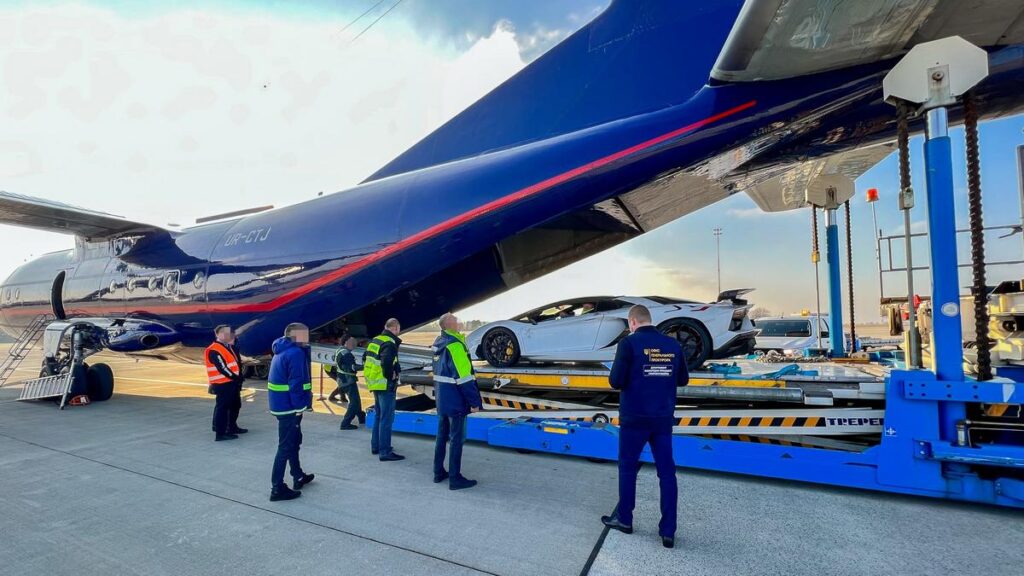 Из киевского аэропорта Борисполь в Германию улетел самолет, на борту которого находились автомобили Lamborghini и Rolls Royce.